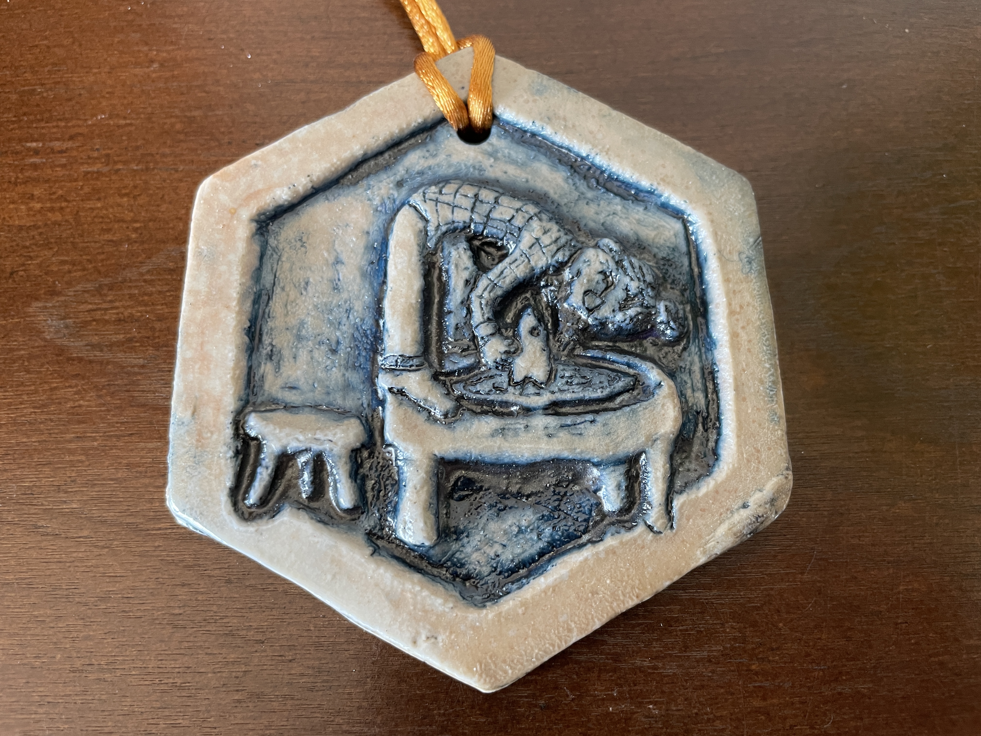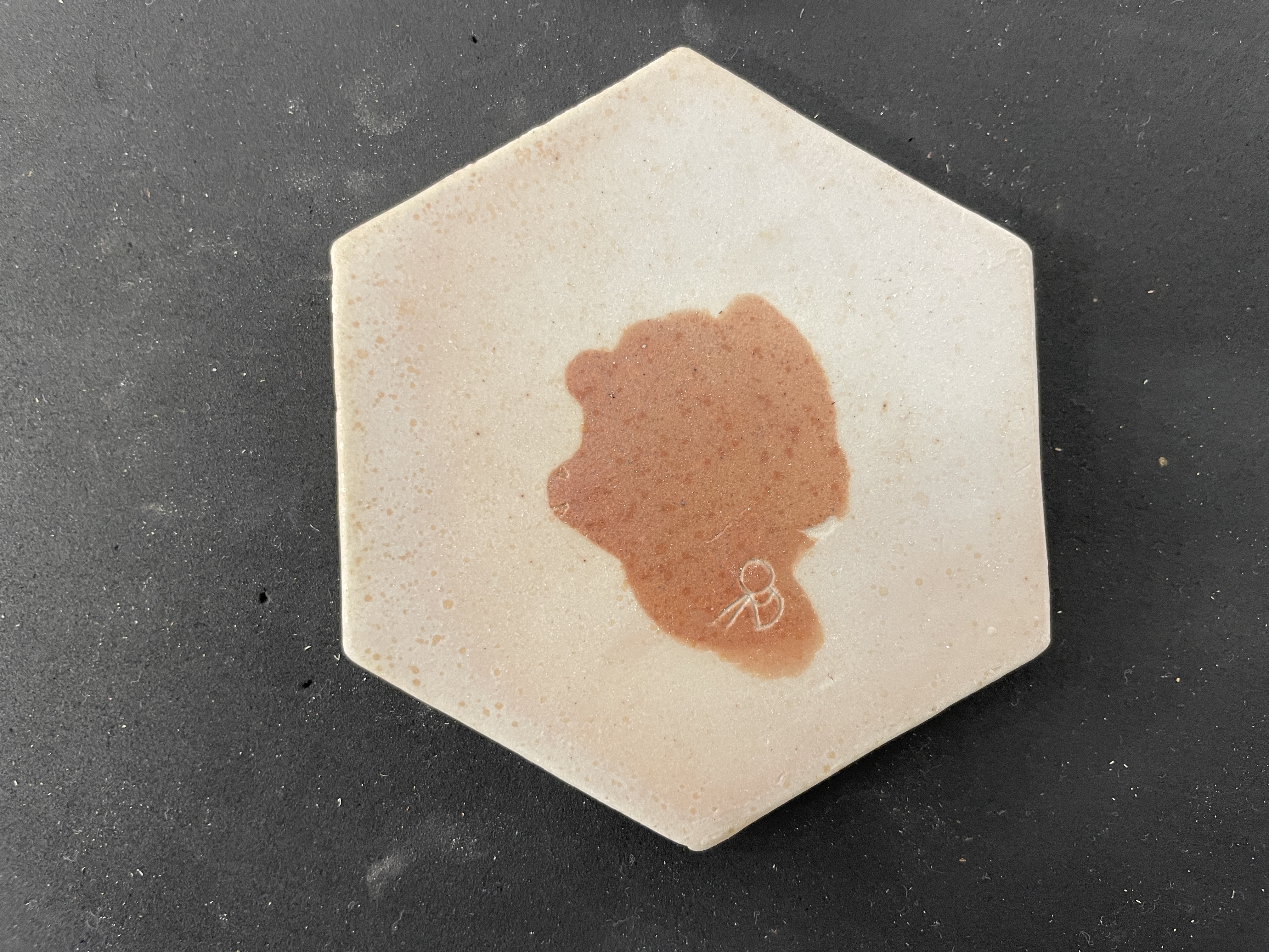 First, I hand carved the tiles and then used to make a reference press-mold. Castings from this mold were then used to create several two-part slipcasting molds, including molds for the half tiles around the perimeter. The tiles were glazed with custom glazes I mixed for this project and then fired to Δ10 in an electric kiln.